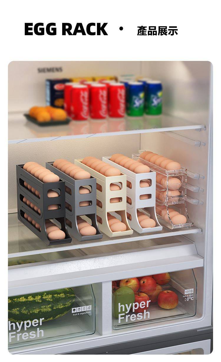 2分鐘前自動滾蛋式雞蛋收納盒 - 3入组(可放90個雞蛋)NT$1098